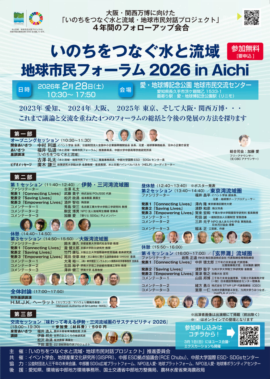 2026年02月20日 ご案内 いのちをつなぐ水と流域・地球市民フォーラム2026 in Aichi2023年愛知、2024年大阪、2025年東京、そして大阪・関西万博・これまで議論と交流を重ねた4つのフォーラムの総括と今後の発展の方法を探ります。開催日時2026年2月28日(土)10:30~17:50会場愛・地球博記念講演 地球市民交流センター 〒480-1342 愛知県長久手市茨ケ廻間1533-1イベント詳細を見る参加登録フォーム 前の記事 一覧